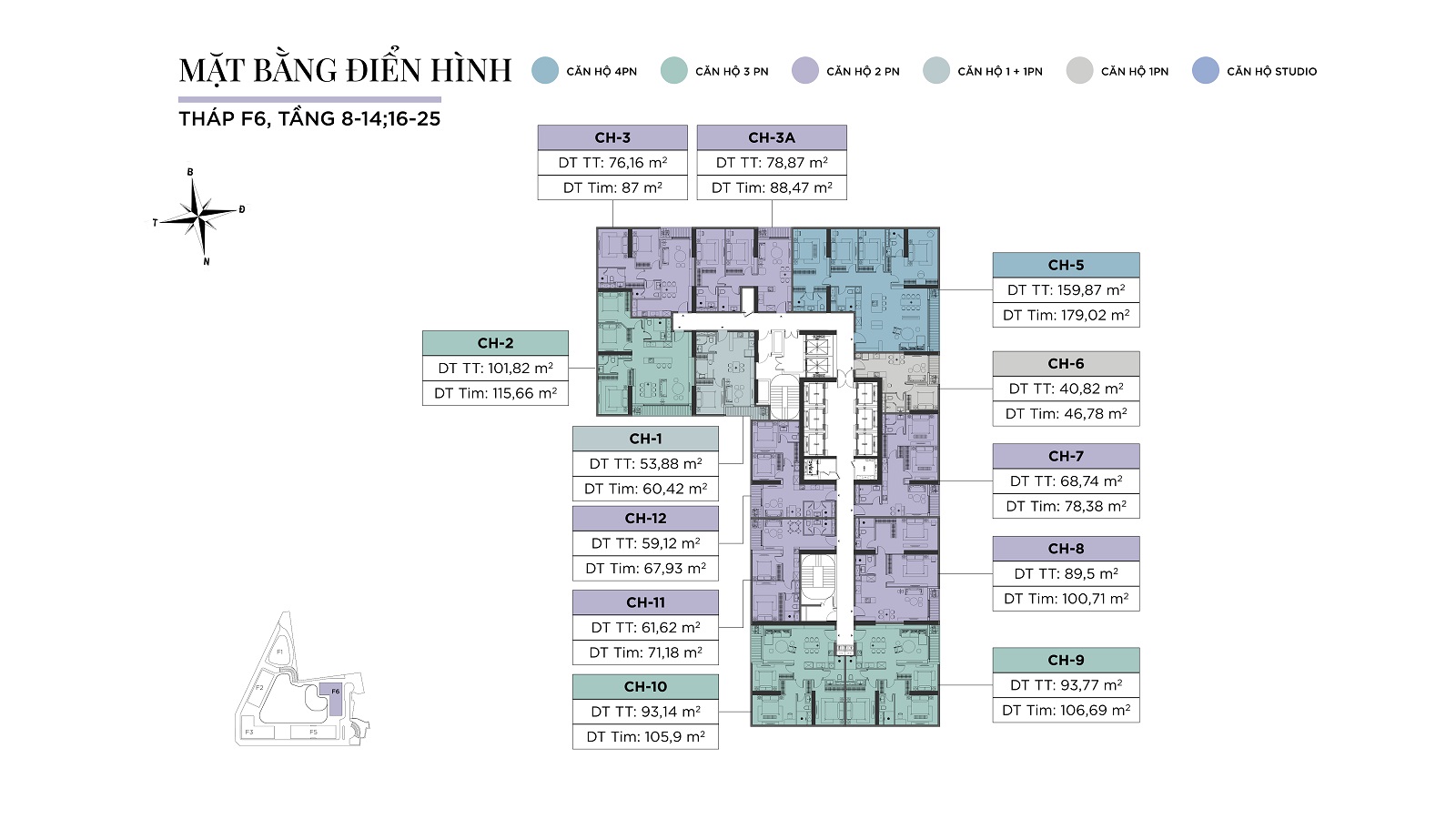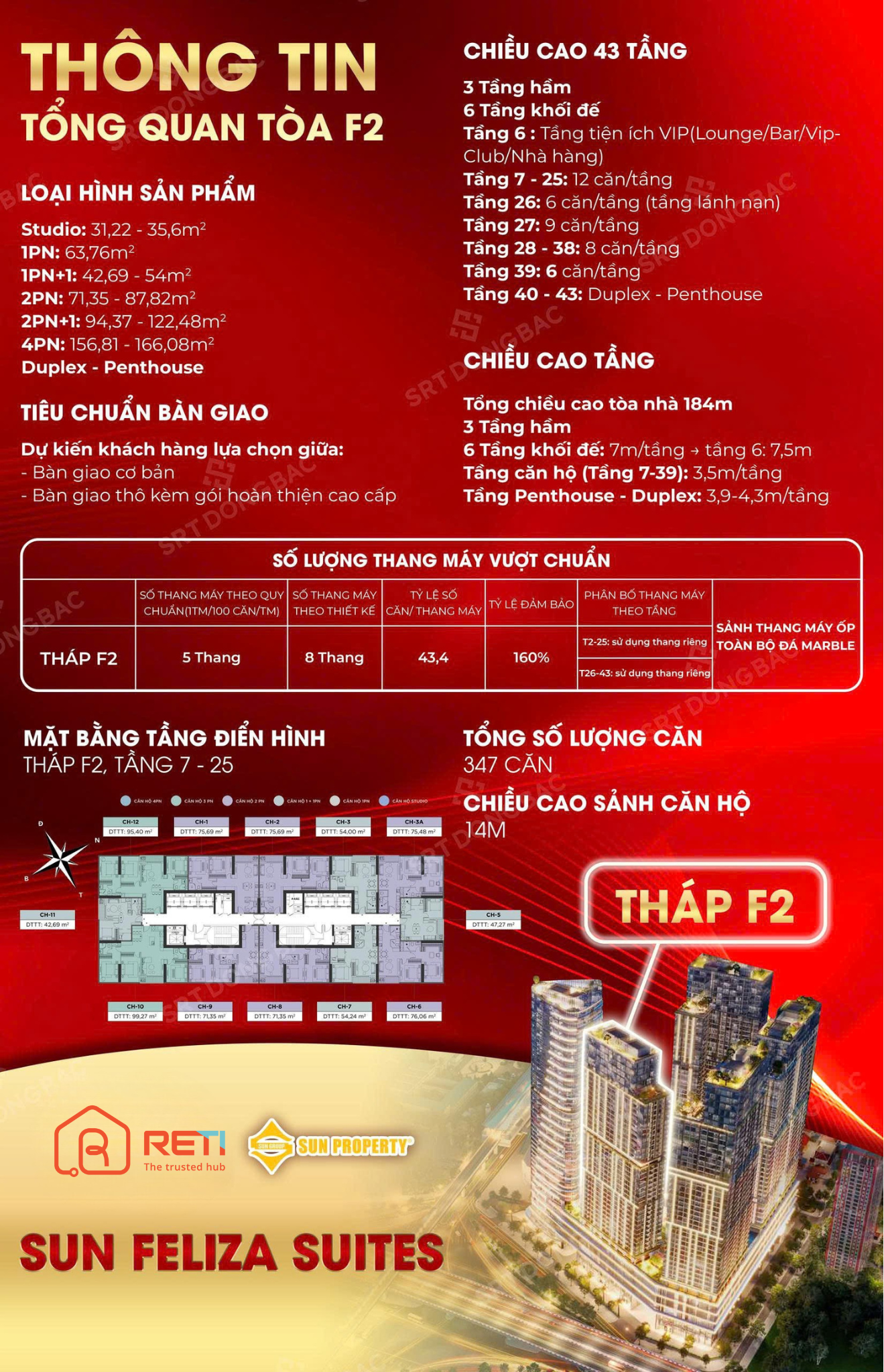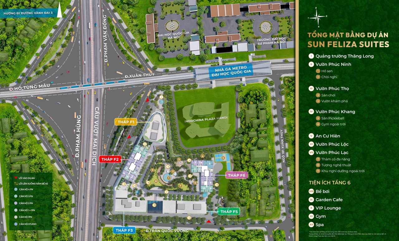 Sun Feliza Suites Cầu Giấy bao gồm 5 tòa tháp có chiều cao từ 43 – 45 tầng, trong đó có 1 tòa Văn phòng hạng A và 4 tòa căn hộ hạng sang. Cụ thể như sau: